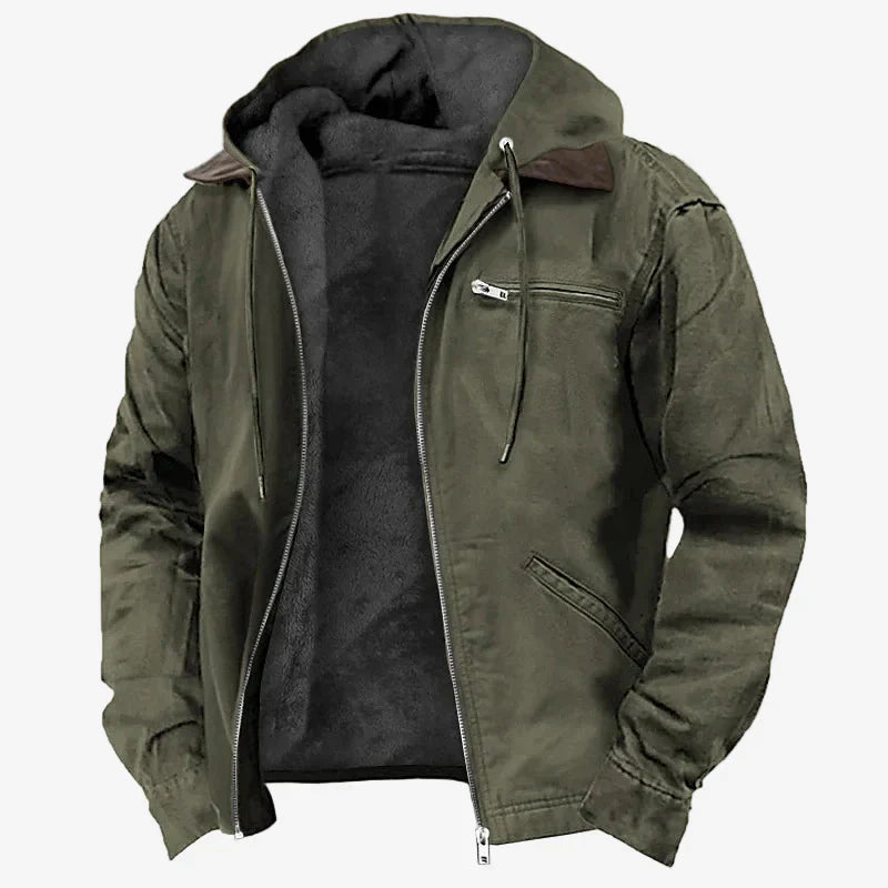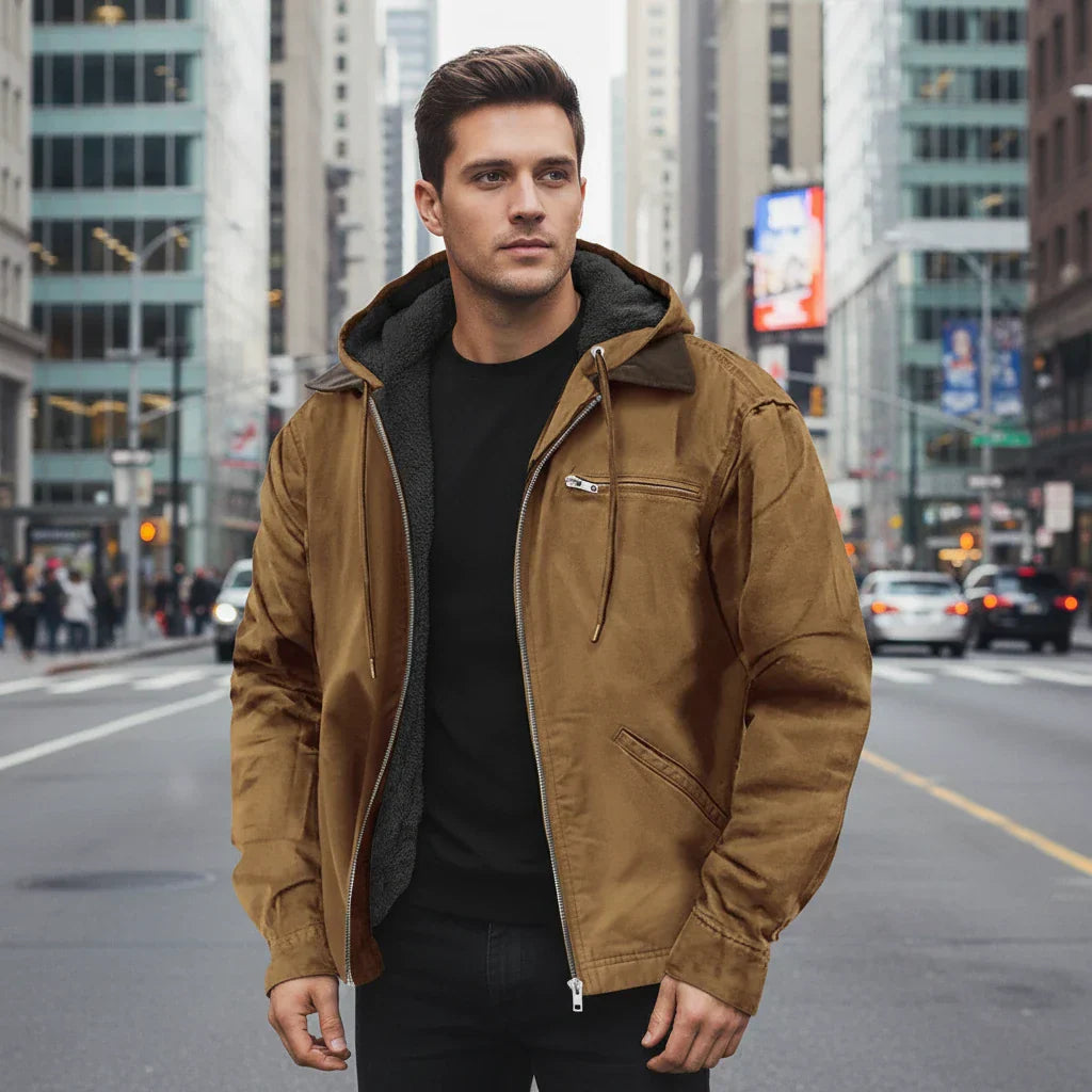 Esta chaqueta con capucha y forro térmico combina el diseño urbano con la practicidad de una prenda de abrigo resistente. Perfecta para quienes buscan estilo sin renunciar a la comodidad.