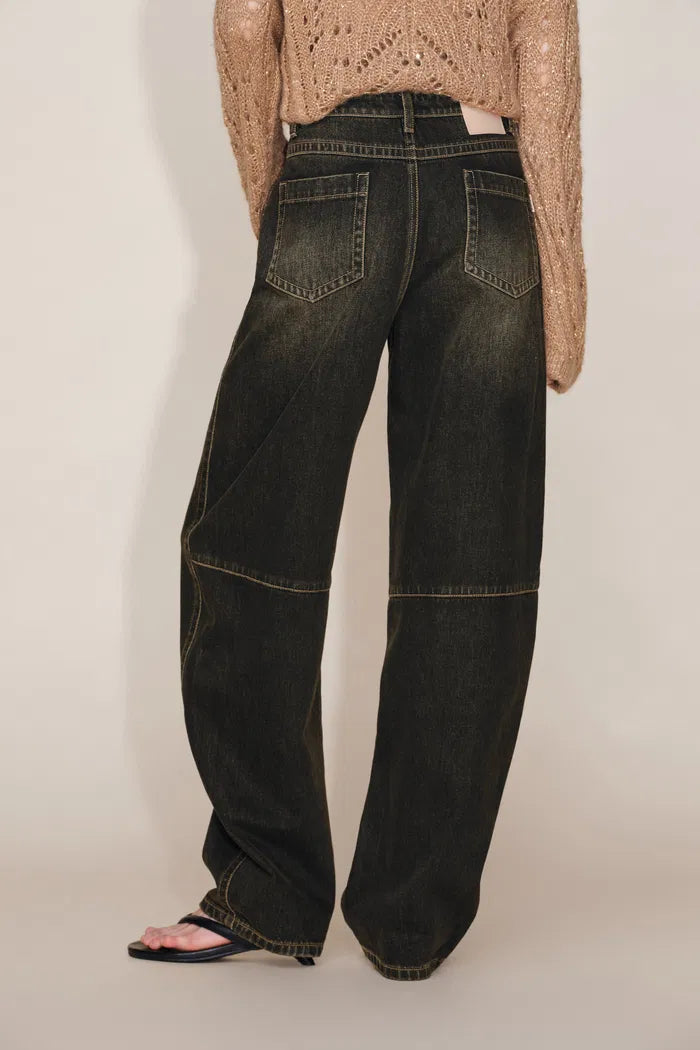 Este vaquero llama la atención por su lavado especial y por los paneles de contraste que rompen con lo convencional. Es ideal para destacar sin perder la esencia denim tradicional.