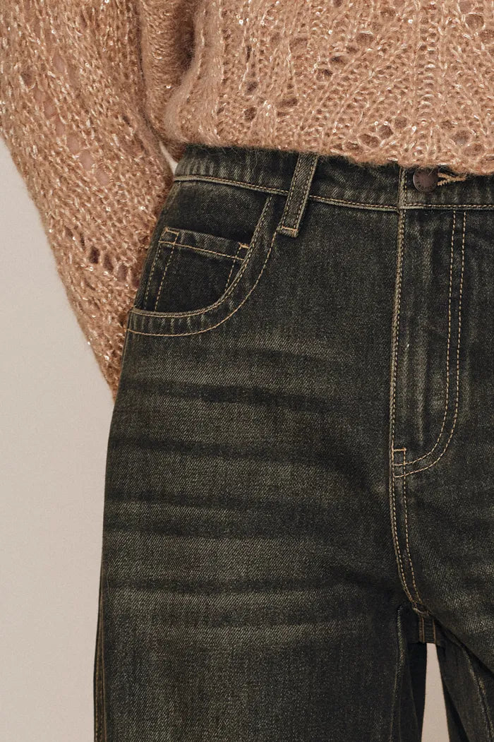 El acabado de lavado medio-oscuro le da carácter, y los paneles de contraste (por ejemplo una pieza lateral o pasadores de otro tono) aportan dinamismo al diseño. Una fusión entre lo clásico y lo contemporáneo.